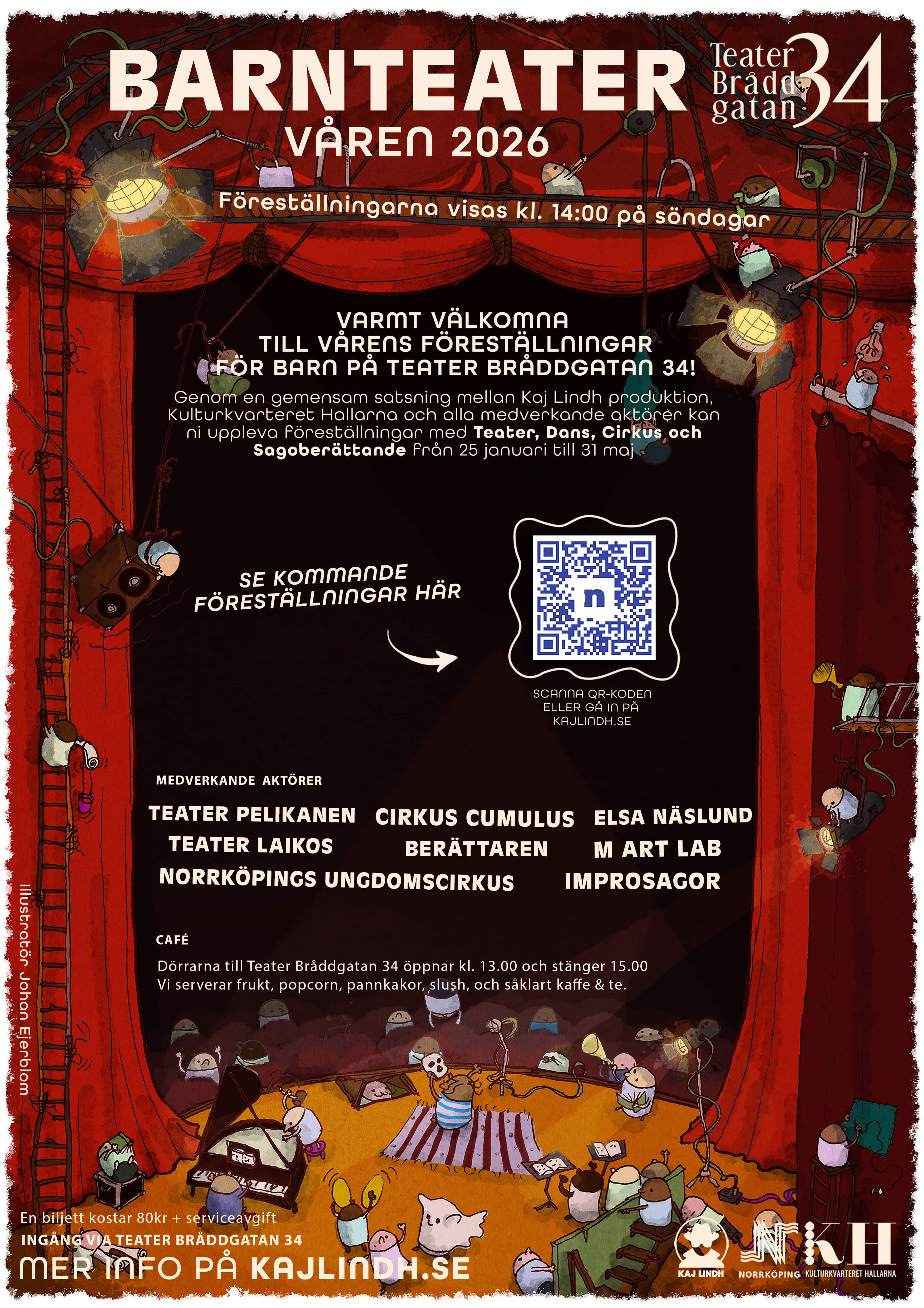 Genom en gemensam satsning mellan Kaj Lindh produktion, Kulturkvarteret Hallarna samt alla medverkande aktörer kan ni uppleva föreställningar med teater, dans, cirkus och sagoberättande! Föreställningarna är ca 30 minuter om inget annat anges.