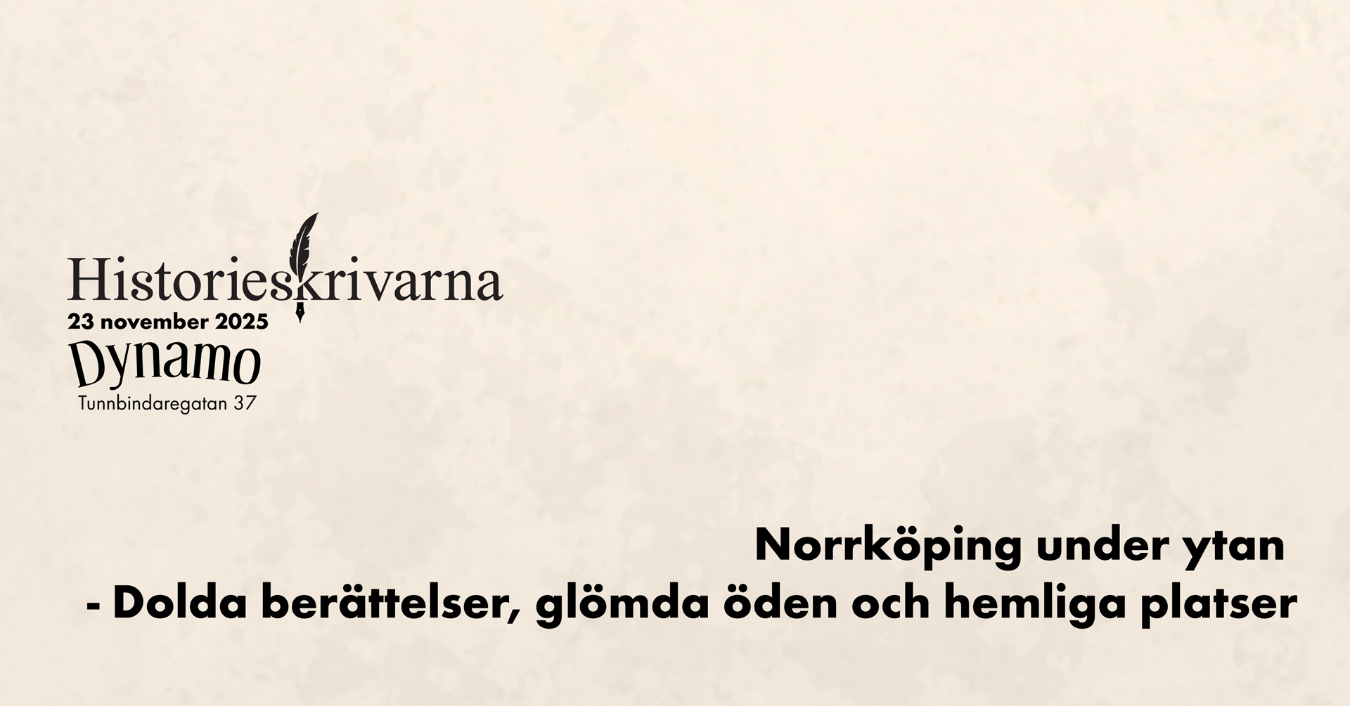 Föreningen Historieskrivarna arrangerar Norrköpings lokalhistoriska bokmässa för fjärde gången. Årets tema är ”Norrköping under ytan – dolda berättelser, glömda öden och hemliga platser”.