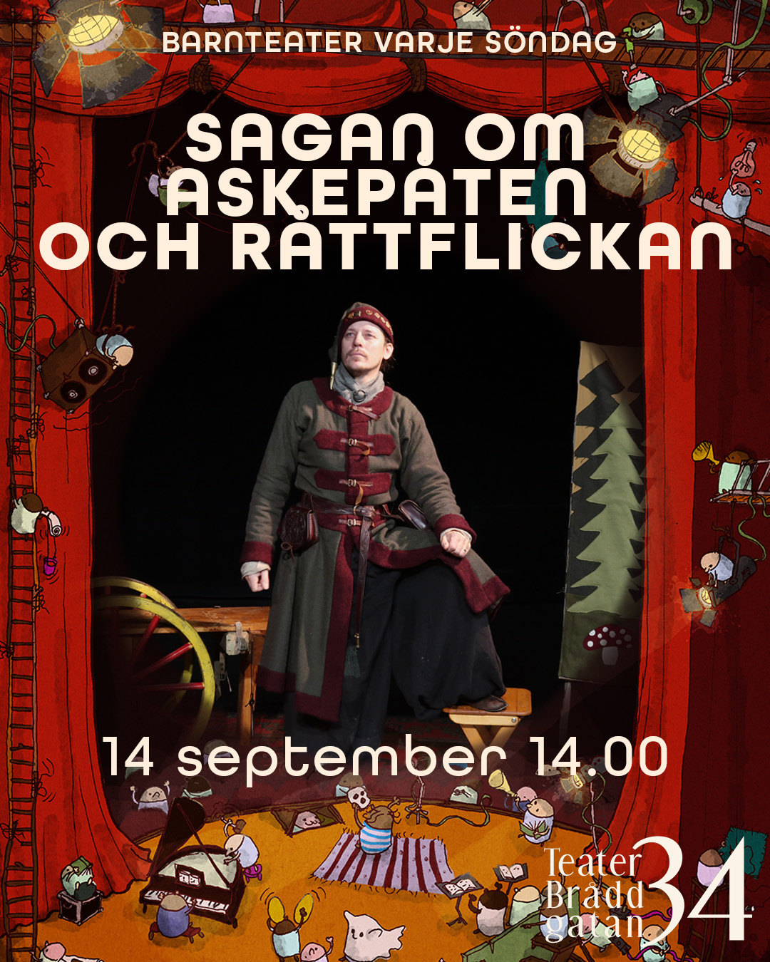 En lekfull och fantasifull sagoteater där klassiska motiv möter nya vändningar. Följ med när Askepåten möter råttflickan i en berättelse fylld av humor, värme och överraskningar. Efter föreställningen får barnen själva bli kreativa och pyssla ihop en egen liten kastanjemus att ta med hem som minne.