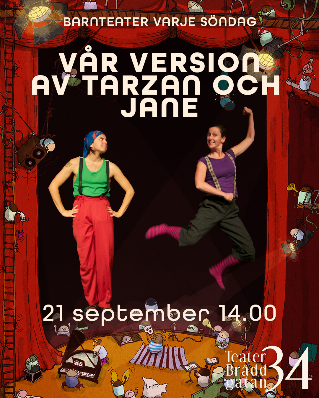Vår Version av Tarzan är en berättelse om att känna sig ensam och rädd och om kampen att övervinna sin rädsla. För egentligen är väl alla rädda för något även om man gömmer det bakom tuffhet eller kanske ett gevär. En vacker historia om att vara stolt över den man är, om vänskap och om att man faktiskt får vara rädd samt såklart om Tarzan och Jane, kriminella silkesapor, en skjutglad Clayton, sengångaren Stefan med sitt eget tempo och självklart en rejäl dos humor.