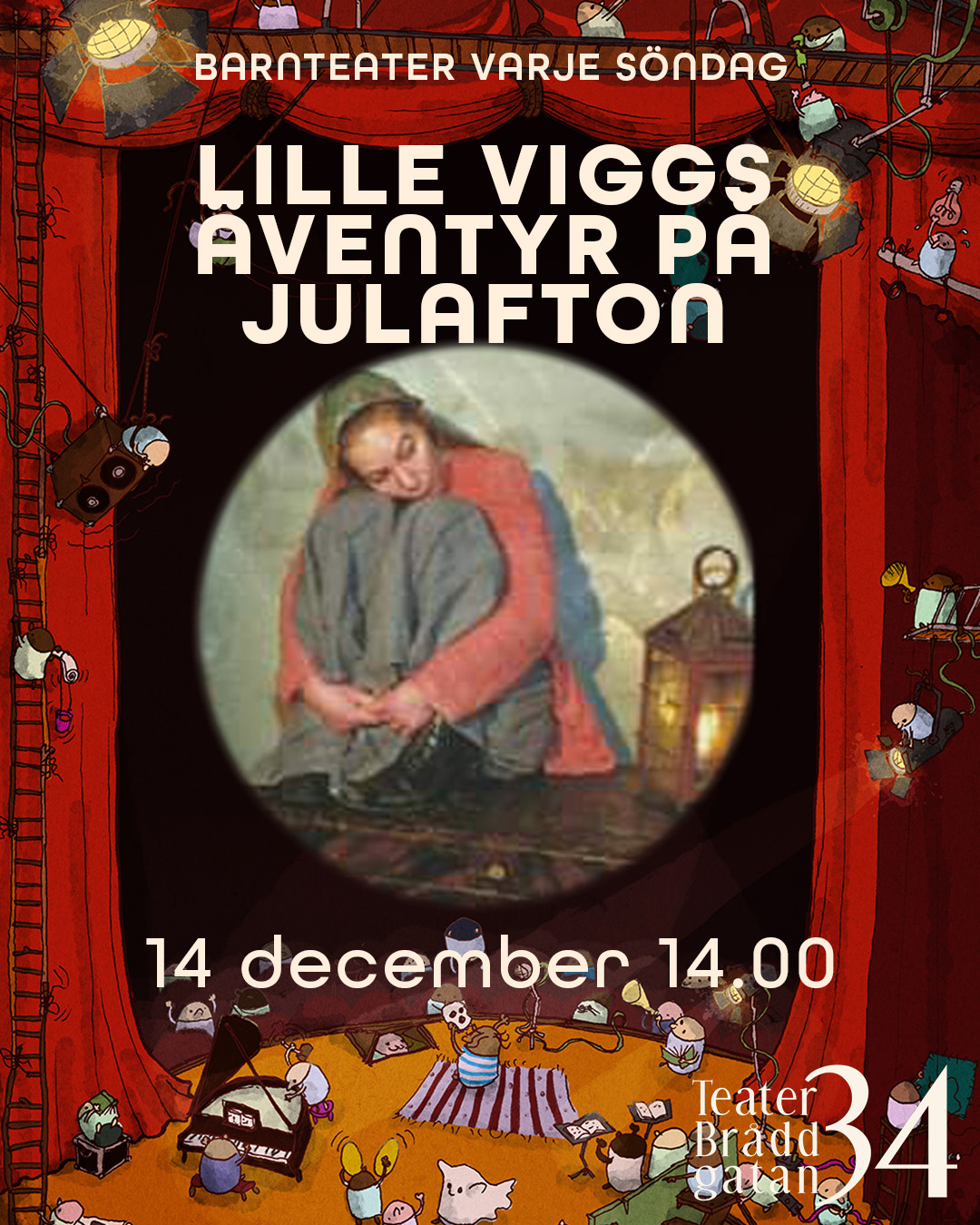 Teater Bråddgatan 34 Bråddgatan 34, NorrköpingLILLE VIGGS ÄVENTYR PÅ JULAFTON Det här är sagan om en julafton för länge sen – förr i tiden. Lille Vigg bor i en stuga långt ute i ödemarken tillsammans med en gumma som heter Gertrud. Det börjar bli kväll och Vigg är ensam i stugan, han sitter och tittar ut genom fönstret. Plötsligt [...]