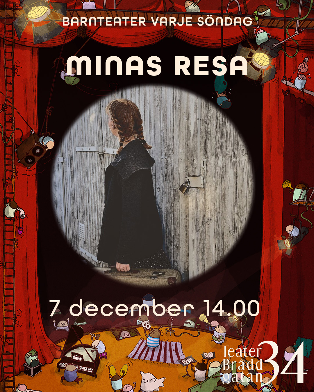 Teater Bråddgatan 34 Bråddgatan 34, NorrköpingSagan om den gången jag inte hade en saga Vad gör en berättare när han inte längre har någon saga kvar?I denna finurliga föreställning följer vi Berättaren på en resa mot det stora slottet i hopp om ett sista mål mat. Med rötter i en tysk folksaga, besläktad med berättelsen om att koka soppa på [...]
