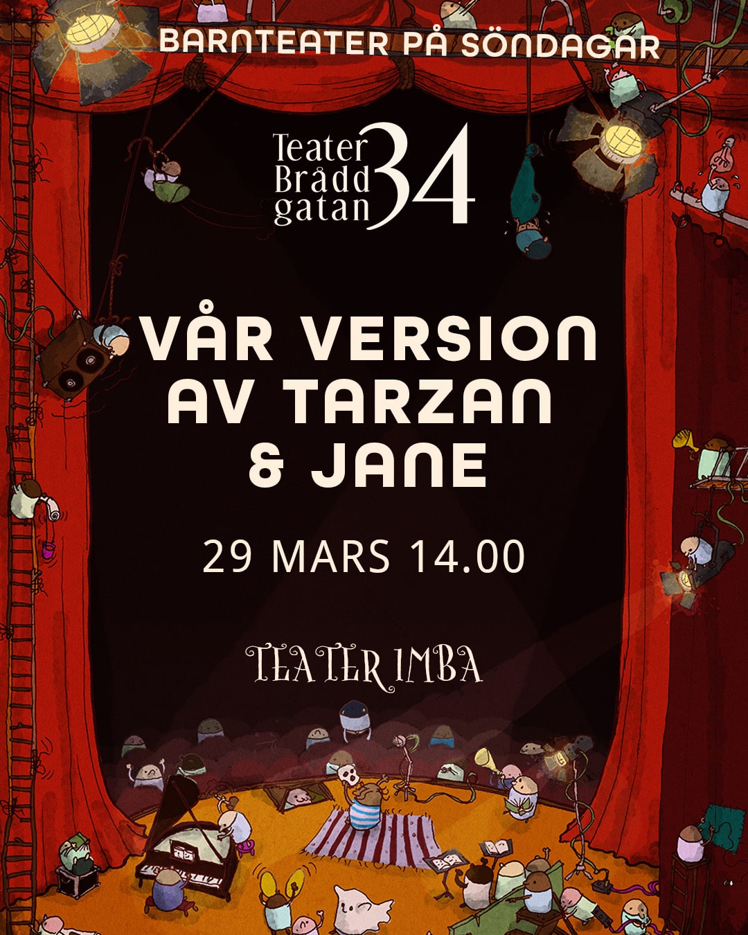 Teater Bråddgatan 34 Bråddgatan 34, NorrköpingVår version av Tarzan & Jane Följ med till ett vilt och outforskat paradis där djungelns lag råder…Här gäller det att vara stark och modig för att klara sig. Men vad händer om man inte känner sig så modig? Östergötlands roligaste teatergrupp, Teater Imba, bjuder på sin lekfulla version av Tarzan & Jane – en berättelse om [...]