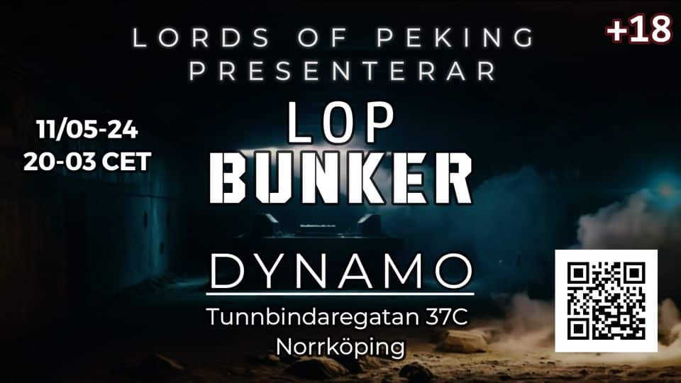 Hallarna • Entré Dynamo Tunnbindaregatan 37, Norrköping, SverigeLOP Bunker kommer att vara ett återkommande evenemang med syfte att berika och stärka den elektroniska musikscenen. På vår första Bunker-kväll kommer vi att erbjuda allt från Techno och D'n'B till House och annan tung, smutsig elektronisk musik. Det som gör denna klubb så speciell för den elektroniska musikscen är att vi samarbetar med [...]