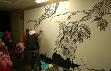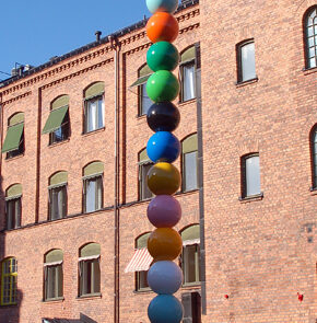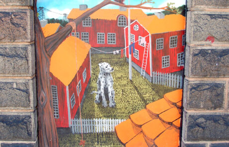 Leta med ögonen, höj blicken. Och sänk den. I kvarteret finns konstverk av både kända konstnärer och kollektiva projekt. Spontana infall, något som definitivt inte fått tillstånd, och genomarbetade konstproduktioner. Vi vill hålla en spännande atmosfär. Naturligtvis är vi bara i uppstartsskedet ännu, en skulpturpark och fler väggmålningar är högst på listan för framtiden. Här finns ett litet galleri med bilder på kvarterets offentlia konst. Du kan maximera fönstret om du vill se bättre.